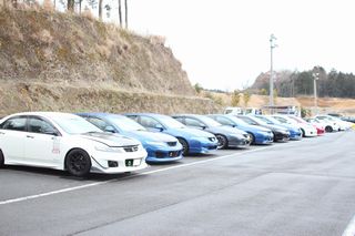 今年の冬は寒い。しかも長い(笑)そろそろ冬の寒さにも飽きた頃、 そんな中、当クラブの走行会も今回で15回目を迎えました。 毎回の事ですが、多くの参加者に恵まれて、実に有り難い事だと思います。 特に目新しい事をしている訳でもなく、特にサプライズが(前回は異例でしたが)ある訳でもなく、 主催者に大した人望もなく(笑) このご愛顧にこれからも応えられるよう、ただただ心を込めて一生懸命頑張っていきたいと思います。 この冬の走行会は、11月の走行会に比べて参加者を集めるのに苦労するのですが、 今回は凄い勢いでエントリーが集まりました。前回のサプライズの影響なのでしょうか?(笑) あっと言う間に定員が埋まってしまい、キャンセル待ちで待って頂く事態にまでなりました。 結局キャンセルも殆ど出ずに、キャンセル待ちの皆様にはご期待に添えない結果になりました。 この場を借りまして深くお詫びを申し上げます。 参加者が集まらなくて苦労する走行会が多い中で、こんなに有り難い事はありません。 厚く御礼を申し上げます。 今回の参加者は。。。先ずは我らがホンダ勢 アコードがまたまた大量の20台、シビックが9台、インテグラが5台、 トゥディが8台、ビートが2台、S2000が2台、プレリュードが1台、 日産勢は、シルビアが4台、スカイラインが1台。 トヨタ勢は、スターレットが2台、セリカが1台、レビントレノが3台、スープラが1台。 マツダ勢は、ロードスターが5台、アテンザが1台、RX−8が1台、デミオが1台。 三菱勢は、ランエボが2台、GTOが2台、ギャランが1台。 スズキ勢はカプチーノが1台。 スバル勢はインプレッサが1台。 総勢74台の車好きの愛車が参加してくれました。本当に有り難うございました。 走行会でお馴染みのインテグラオーナーの参加者が減ってきた事は、同じホンダオーナーとして少し寂しい気がしますね。 あまり走行会でお馴染みではないアコードが増えてきた事は当クラブとしても大変嬉しいです。 いつも通りドライバーミーティングの後、Aグループから走行開始です。 Aグループの皆さんにはいつも路面乾燥作業に携わって頂き有り難うございます(笑) |