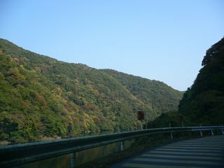 国道307号線から国道422号線に入ります。 県道から西名阪道に入るつもりが・・・ いつのまにかナビから道が消えた(爆) どうも西名阪に乗り損ねたみたいで、側道を走ってしまいました。 もう一度戻って西名阪道に乗り、上野ICを出て 国道368号線(通称・名張街道)を南下します。 ここもバイパスが出来ていて、好調に走り抜ける事が出来ました。 名張市街を抜けて、いよいよ県道81号線、 いわゆる香落渓です。ここを抜けて曽爾高原に向かいます。 ここは青蓮寺川、青蓮寺ダム、青蓮寺湖が織りなす 自然の絶景が広がる素晴らしい所です。 特にこの紅葉の季節は、大変綺麗な所です。 お勧めのポイントです。 道幅は狭いのでなかなか大変ですが、手つかずの自然が 360度パノラマで見る事が出来ます。 バイクのツーリングコースでもあり、よくすれ違いましたよ。 |