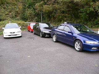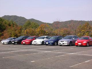 一番上にある駐車場で、みんな並べて撮影会です。(笑) とにもかくにも紅葉が美しい。 春の桜、夏の新緑もいいですが、私個人としては 秋の紅葉が一番好きですね。 ここはどの角度から撮っても紅葉が入る絶好の撮影ポイントなんです。 むかしむかしこの駐車場でHCOCの取材をした事もあります。 ここで早めの昼食を取って、おみやげも買って次の目的地、 香落渓方面に出発です。 |