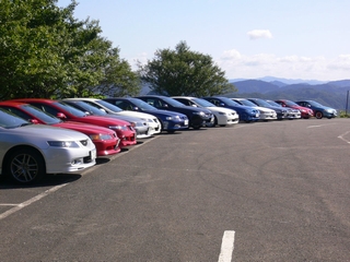 残暑まだまだ厳しい今日この頃ですが、 皆さんは如何お過ごしでしょうか?(時候の挨拶) 今回のツーリングは、京都周山街道を日本海側まで走破する企画です。 名神高速・桂川PAに集合。私はナビメンバーのharuちゃんを迎えに行って、 集合場所に向かいました。 天気はもう最高の晴天。晴れ男の面目躍如です。 今回の参加者は、JJさん、ベータさん、masardさん、Maverickさん、 ひだちんさんご一家、hideさん、ゆっちさん、ナイトさん、Ryoさん、 当クラブ特別会員のくろちゃん、タイプCさん、 ゲストでいつも参加してくれるキッスさん、じれんまさん、 今回はゲスト参加ですが、恐らく入会してくれる(笑)凪音さん、 計15台でした。 それにしても徐々に参加台数の増えてきました。嬉しい限りです(^^) 集合場所で、この所サプライズが起こっているのですが、 今回もサプライズが。。。(笑) 休憩していらっしゃった方をメンバーの車と間違えて両脇を固めてしまう(笑) しかもメンバーのご近所とか(笑) アコードが沢山集まっているので、何事かと思ってサイトを探してくれた方。 (お二人ともBBSに書き込んでくれました。) やっぱり同じアコードが何台も集まっていると、注目もされますね。 是非、参加して頂きたいと思います。 簡単なミーティングの後、国道162号線、通称周山街道に向かいます。 |