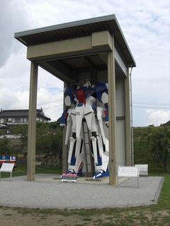 | 国道181号線を少し走ると道の駅・久米の里に到着です。 この道の駅には大きなガンダムの模型が展示されてます。どうやら個人で作られた様です。 ガンダム好きにはたまらないんでしょう。数名の方が写真撮影されてましたね。 私はガンダムは全く分からないので(笑) ここでみなっちさん親子と合流です。 少し休憩をして次の目的地、蒜山高原に向かいます。 |