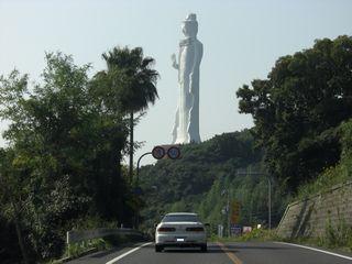 | 海岸沿いを走る国道28号線を南下します。この国道は日本じゃにみたい(笑) 道ばたに椰子の木が植えてあり、まるで南国ムード。しかも車も少なく信号も少ない。 ツーリングにはもってこいです。バイクのツーリングともたくさん出会いましたね。 また淡路島は自転車のメッカでもあるんですね。多くの自転車野郎が走ってました。 有名な世界平和大観音像も綺麗ですね。 |