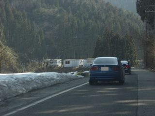 | 県道548号線から県道3号線に入り、県道11号線を経て、県道1号線に入ります。 天気もよく、渋滞も殆どなく誠に順調に来ていましたが、県道1号線に入った頃から 様子が変わってきます。 まだまだ大量の雪が残ってました(;^_^A 県道1号線から県道712号線に入る頃には、道の両サイドまで雪が迫ってきました(;^_^A ホンマチェーンなしで大丈夫なんか。。。(;^_^A |