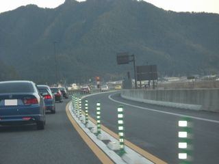 | 中国自動車道から吉川JCTで舞鶴若狭自動車道に入ります。 この舞鶴若狭自動車道は社会化実験で、現在は無料で通行できます。 天気も良く、特に渋滞もなく、順調に走行しております。程なくして六人部PAに到着して、ここで休憩です。 |