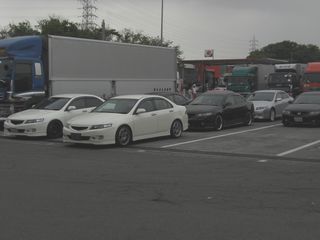 | ここで、しげ兄と合流しました。 この辺りでは雨も降り出し、どうなる事かと思いました(^^ゞ 東名阪自動車道に戻り、伊勢湾岸道から東名高速に入ります。 |