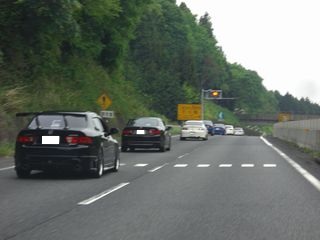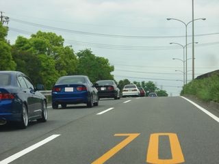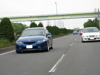 | 名阪国道を東進して東名阪自動車道に入ります。 結構空いていたので、ちょっと追い越し車線から撮ってみました。 いつも後ろからなので、前の方があまり写らないですからね。 それにしてもアコードパレードは素敵です(笑) |