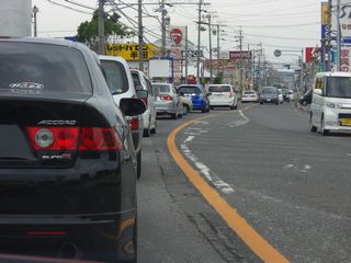 | 魚ひろばの近くに今回のツーリングの最大の目的地である、 まるは食堂があります。ここのエビフライが美味しいらしい。 丁度お昼頃だったのですが。。。 またまた満車! 満車(-_-メ) "く(""0"")>なんてこった!!"もう唖然です。 結局私の独断で先のプランを優先するという判断にして、 次の休憩場所であるイオンでお昼ご飯を食べる事にしました。 楽しみにしていた皆さん、本当にごめんなさいm(_ _"m) しかもイオンに向かう国道247号線が渋滞。どうも私たちは一番来てはならない季節に知多半島に来たようです。 あちこちに潮干狩り場があり、どこもかしこも人、人、人。殆どが名古屋ナンバーだったので、 名古屋人の近場の遊び場なんでしょうね。 どうにかこうにかイオン半田店に到着です。 |