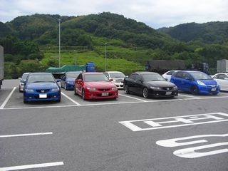 | マリンパークと言うだけあって、ここの駐車場は夏場だけ有料です。 この季節は無料(⌒∇⌒)。空いているだろうと思っていたのですが、 満車満車(-_-メ) 凄い台数でした。どうも愛車自慢大会(オフ会)が行われていた様です。あちこちで大騒ぎ┐(~ー~;)┌ しかも東海方面の愛車自慢大会(オフ会)のメッカらしい。知りませんでした。 ツーリングの方が楽しいのにねぇ。。 結局、端の端のスペースで、集合写真を撮りました。 久し振りに一列集合写真が撮れました。 暫く休憩して、次の目的地に向かいます。 |