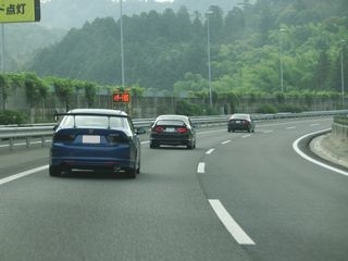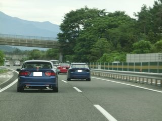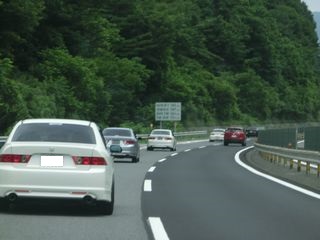| 中央自動車道に入ってからも渋滞もなく大変快適です。 天気もカンカン照りではないので凌ぎやすいですね。 暫く走って屏風山PAに到着です。 ここでたるさんと合流しました。 東海本部もここで集合だったので、合体して次の休憩場所に参ります。 2本部合同のアコードパレードは順調です。 |
