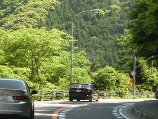 | 道の駅・杉の湯川上を出て国道169号線に戻ります。 この季節は若葉が芽生えて黄緑の葉と緑の葉のコントラストが素晴らしく綺麗ですね。 県道40号大台ヶ原ドライブウェイに入ります。しかしこの先で悲劇が・・・(笑) |