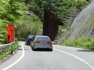 国道169号線を暫く走って、 次の休憩場所、道の駅・おくとろに到着です。 ここまで全く渋滞もなく、 時々遅い車に難儀する事もありますが、 結構、譲ってくれるのですこぶる順調です。 この道の駅も殆ど人影はなく、のんびりとしたものです。 この道の駅がある北山村は日本で唯一の飛び地なんですね。 同じ道の駅の隣に温泉宿もあり、なかなかいい所ですよ。 個人的にまた訪れてみたいと思います。 しかしこの先で驚愕の・・・ |