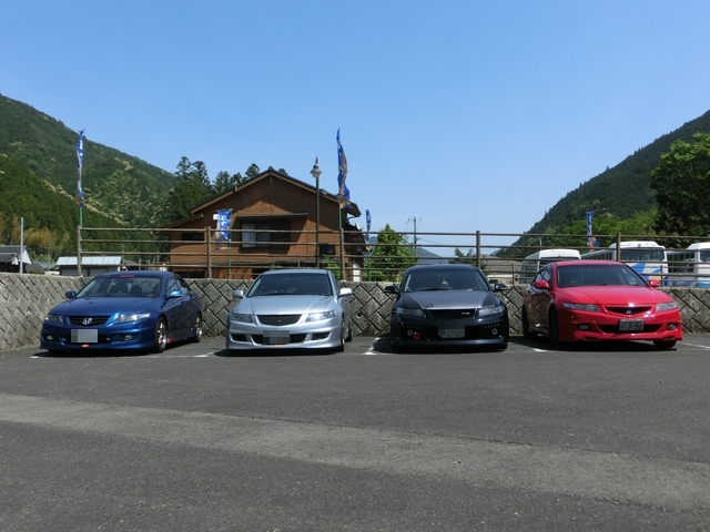 | 今回のベストショットは、道の駅・おくとろでの整列写真です。 Anniversary 10th 2回目のツーリングはこの上ない晴天に恵まれて、事故もなく恙なく終了出来ました。 参加者の皆さん、本当にお疲れ様でした。 殆ど高速道路を使わない、一般道路のみで約400km程走ったのは久し振りです。 少人数ならではのペースもすこぶる良く、本当にガッツリ走ったって感じで良かったと思います。 自画自賛で申し訳ないですが、設定したルートも思ったより楽しくて、また走りたい程でした。 人馬一体ではないですが、この一体感は走らせてこそだと思います。 それを一番実感出来るのはツーリングでありサーキット走行だと思います。 特にツーリングは仲間達と連なって、風を切って走る快感は最高に楽しいです。 是非、この快感をより多くのアコードオーナーに味わって頂きたいと思います。 文責 boss@admin |