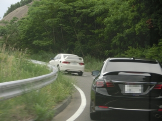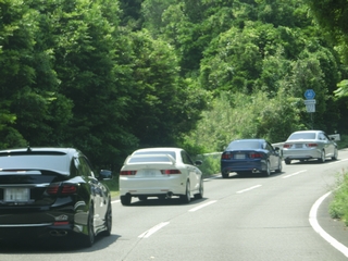 | そう、例の所は「海鮮せんべい南紀」です。 試食も出来てコーヒーも無料、レストランやお土産を買える。 ここで休憩して、次の目的地に向かいます。 県道33号線から国道42号線(田辺BP)に入り、県道199号線から 県道35号線を経て、国道424号線に入ります。 ここまで渋滞もなく、当初計画した経過時間とほぼ同じで大変順調です。 国道424号線から「黒潮フルーツライン」に入ります。 果樹園の中を走る農道の様な所ですが、勿論信号もなく車も少なく走りやすい道です。 適度なワインディングでいいですね。ただ車線が1.8車線くらい(笑) グーグルマップで見た以上に狭く感じました。 |