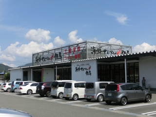 | 国道312号線を北上して、HAOCツーリング御用達の(笑) 海鮮せんべい但馬に到着です。 時間的に中途半端でしたので、こちらを先に寄る事にしました。 まだ午前中でしたので、大変空いていて、ここで車を並べて写真を撮るなんて珍しい。 コーヒー無料で試食も出来る、人気のスポットです。 ここで休憩・買い物もして、出石に向かいます。 |